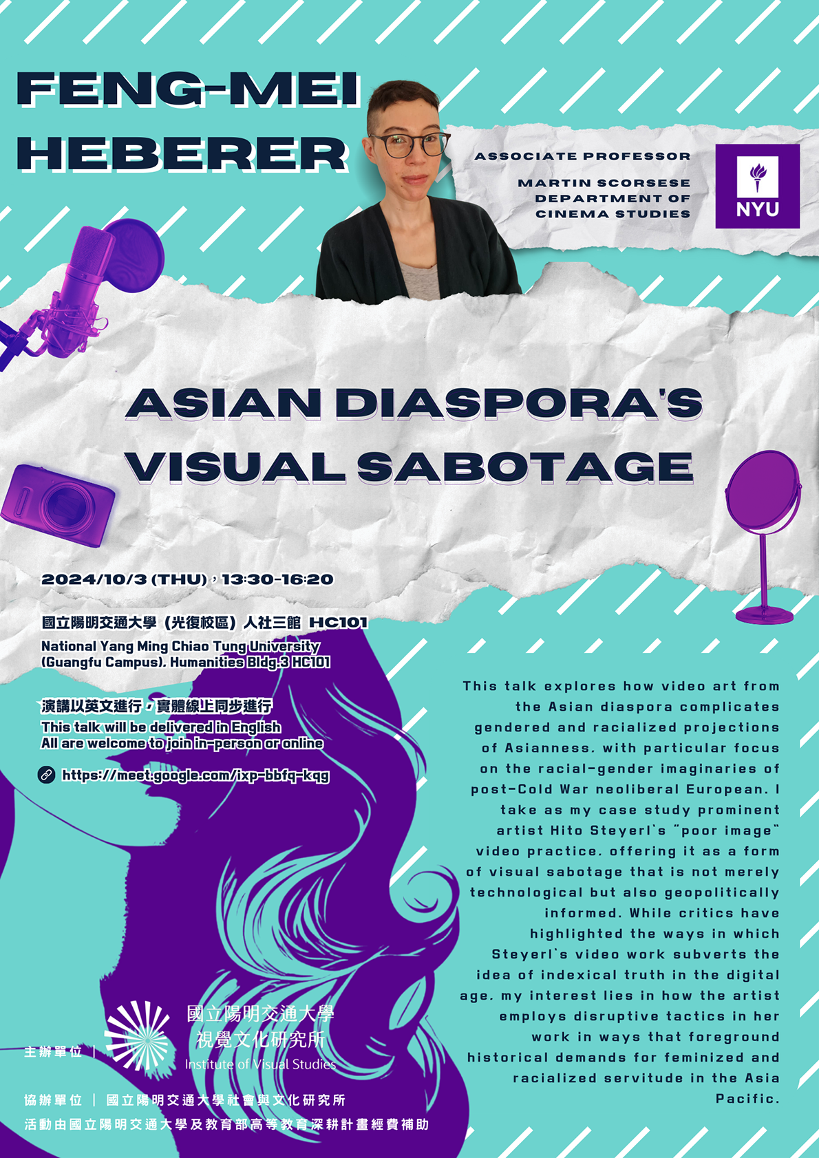 This talk explores how video art from the Asian diaspora complicates gendered and racialized projections of Asianness, with particular focus on the racial-gender imaginaries of post-Cold War neoliberal European. I take as my case study prominent artist Hito Steyerl’s “poor image” video practice, offering it as a form of visual sabotage that is not merely technological but also geopolitically informed. While critics have highlighted the ways in which Steyerl’s video work subverts the idea of indexical truth in the digital age, my interest lies in how the artist employs disruptive tactics in her work in ways that foreground historical demands for feminized and racialized servitude in the Asia Pacific.